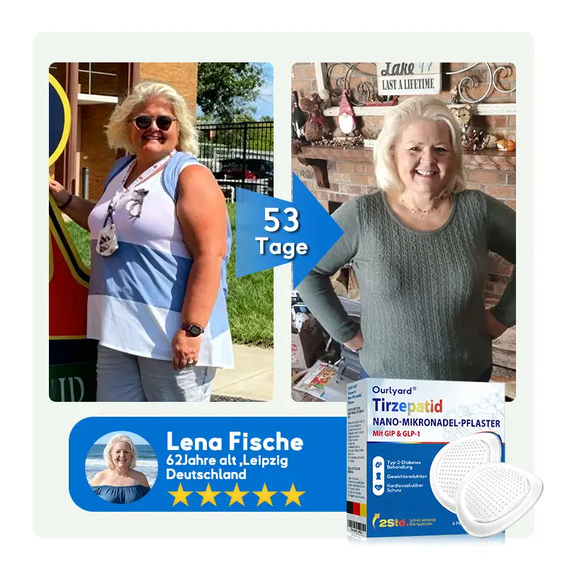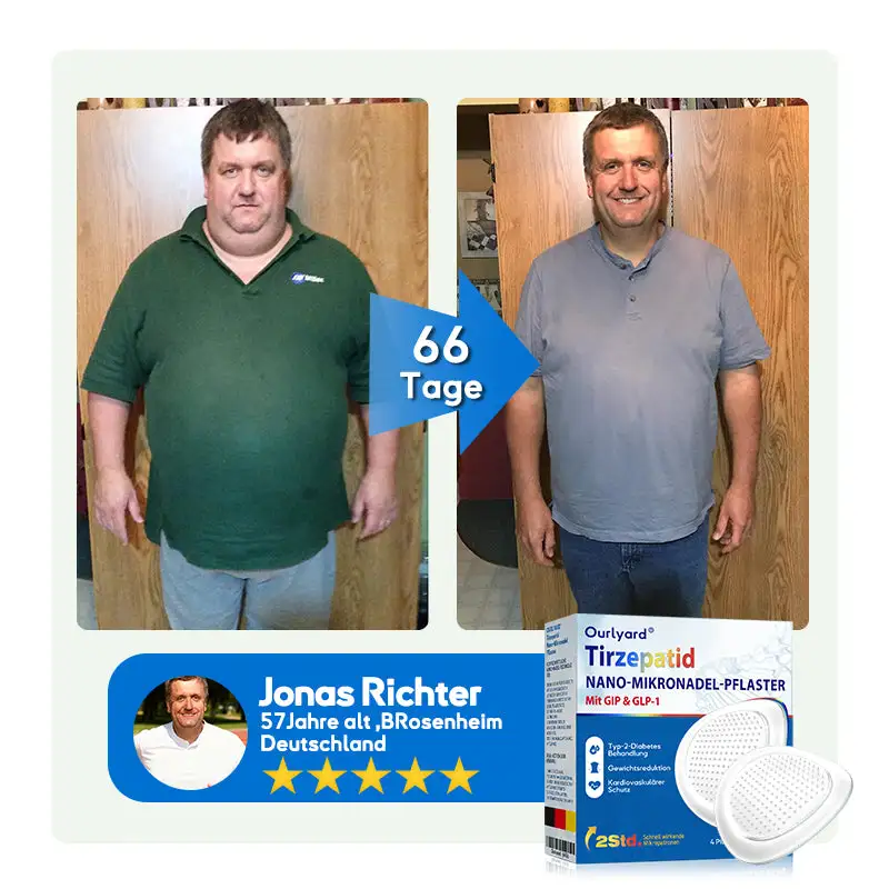Ich hatte zuvor noch nie eine ๐๐ข๐ซ๐ณ๐๐ฉ๐๐ญ๐ข๐-Behandlung verwendet, daher habe ich vor dem Kauf von Ourlyardยฎ viel recherchiert und mehrere Fallstudien gelesen. Ich habe bestรคtigt, dass ๐๐ข๐ซ๐ณ๐๐ฉ๐๐ญ๐ข๐ eine groรartige Lรถsung zur Gewichtsreduktion ist. Unter allen Optionen stellte sich das ๐๐ฎ๐ซ๐ฅ๐ฒ๐๐ซ๐ยฎ ๐๐ข๐ซ๐ณ๐๐ฉ๐๐ญ๐ข๐-๐๐๐ง๐จ๐ฉ๐๐ฅ๐๐ฌ๐ญ๐๐ซ als die beste Wahl heraus. Wie erwartet hatte ich in den ersten zwei Wochen der Anwendung keinerlei Beschwerden. Die Ergebnisse waren sehr konstant und schrittweise. Es half mir, meinen Appetit langsam zu kontrollieren, und ich bemerkte, dass sich mein Stoffwechsel deutlich beschleunigte. Meine Verdauung verbesserte sich, und das Sรคttigungsgefรผhl hielt lรคnger an. Nach der Anwendung von etwa 3 Packungen รผber 9 Wochen ging ich von 180 Pfund auf 128 Pfund zurรผck. Die Ergebnisse traten sogar schneller ein als das, was ich online รผber Menschen gelesen habe, die ๐๐ข๐ซ๐ณ๐๐ฉ๐๐ญ๐ข๐-Injektionen in medizinischen Einrichtungen erhalten! Das liegt daran, dass Ourlyardยฎ eine hรถhere Wirksamkeit und bessere Therapietreue bietet. Ehrlich gesagt denke ich, dass jeder das ๐๐ข๐ซ๐ณ๐๐ฉ๐๐ญ๐ข๐-Mikronadelpflaster ausprobieren sollte โ es ist eine groรartige neue Behandlungsmรถglichkeit.